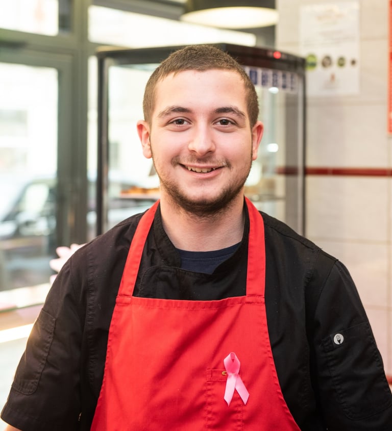 Samuel nous a rejoint en août, avec l'ambition d'obtenir son diplôme de CAP boucher. Ce fût une réussite et, puisqu'à la Boucherie Saint-Christophe on se sent bien, il a décidé de poursuivre avec nous ! Toujours très souriant, avec lui vous êtes sûrs de passer un bon moment !